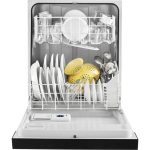 Upgrade your kitchen with the 24-Inch Full Console Dishwasher in sleek black, designed to make cleaning effortless and efficient. With 13 place settings, it’s perfect for families or small gatherings. Operating at a whisper-quiet 55 dBA, this dishwasher ensures minimal noise while delivering exceptional cleaning performance.